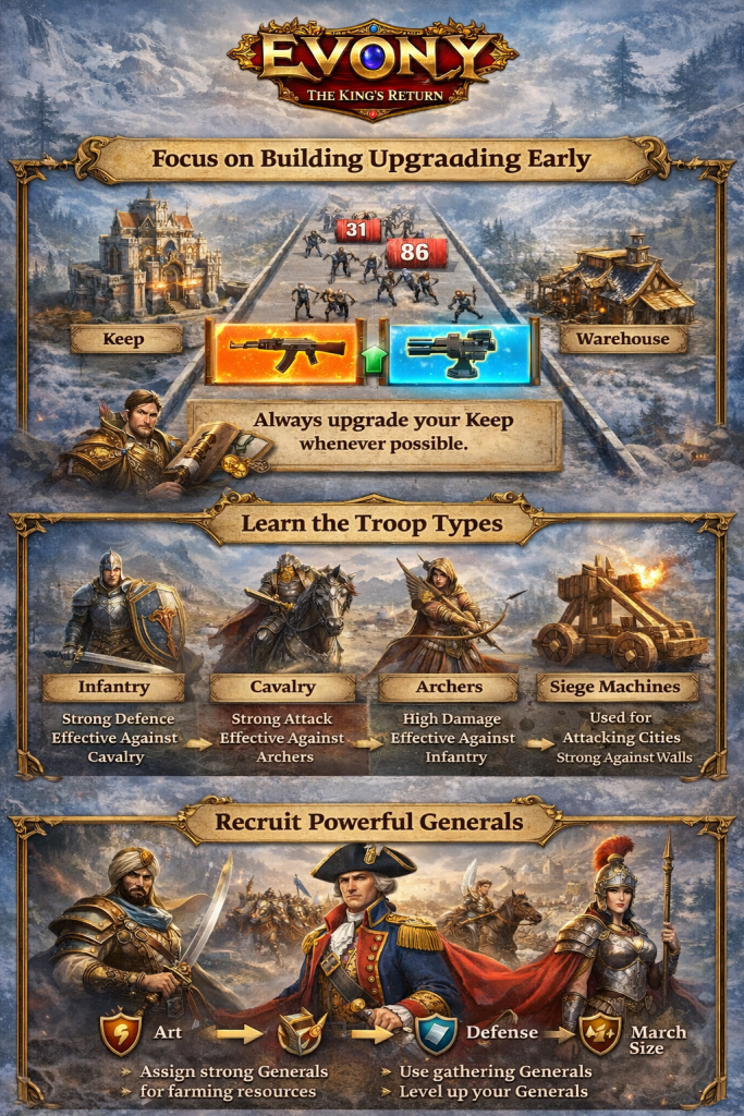 When I first started, I upgraded random buildings instead of focusing on my Keep…